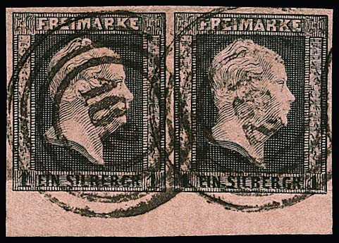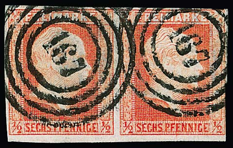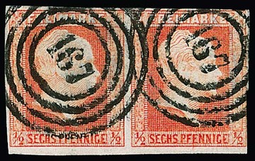 "167" (Bornheim o. Roisdorf) klar auf Paar 1/2 Sgr. (rechte Marke soeben rechts ber.)