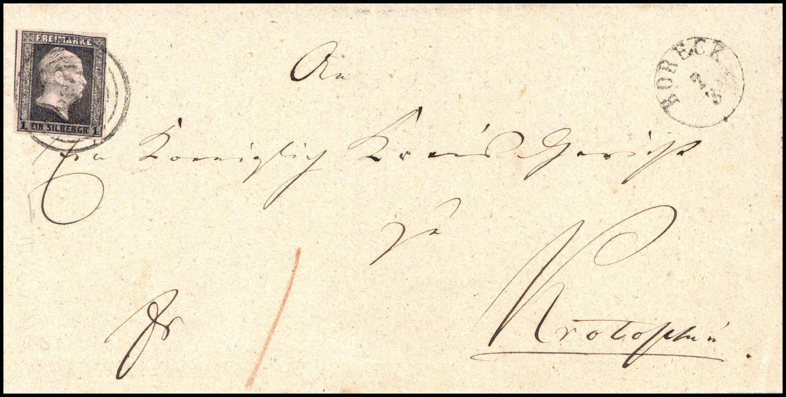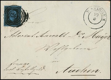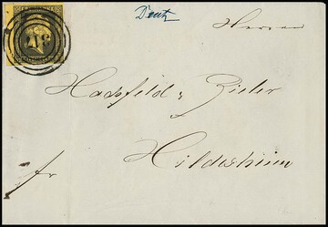 "317" nebst hs. Aufgabe "Deutz" auf gef. Brief mit tadellosem Randstück 3 Sgr. schw./goldgelb