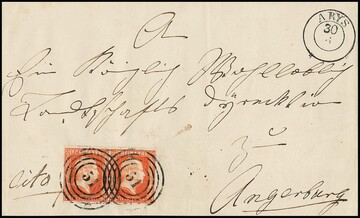 "51" nebst K2 "Arys" auf Prachtbrief mit Paar 1/2 Sgr. ziegelrot (linke Marke herstellungsbedingter Papierkniff), sign. Kruschel