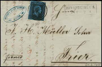 "130" nebst Ra2 "Bingerbrück" auf Kabinettbrief 1 Sgr., sowie auf Brief (unten kleiner Papierfehler) mit Prachtstück 2 Sgr.