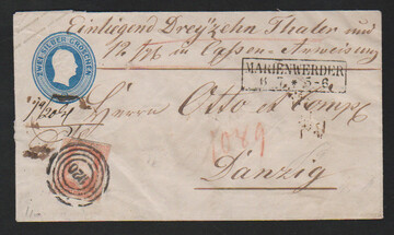 "920" nebst Ra2 "Marienwerder" auf Wert-Ganzsache 2 Sgr. blau mit ZuF 1/2 Sgr., Gebrauchserhaltung