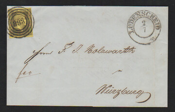 "893" nebst K2 "Lüdenscheid" auf Faltbrief mit Kabinettstück 3 Sgr.
