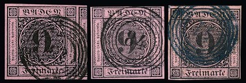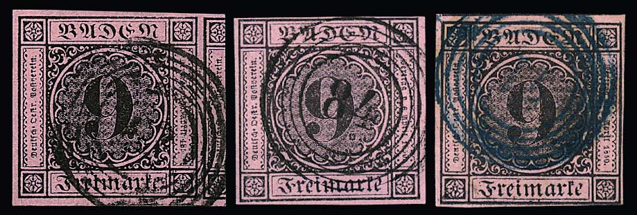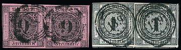 9 Kr. schw./rosa, acht ausgesucht breitrandige Kabinett-/Luxusstücke, teils Schnittriesen, ein Befund Brettl