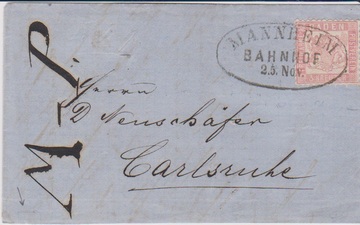 "Mannheim Bahnhof", Ovalstempel sehr klar auf Prachtbrief 3 Kr. rosa
