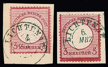 "Krotzingen", nachverw. K1 nebst Uhrradstempel "5" (von Thunsel) auf Briefteil mit 3 Kr. Brustschild (Fotoexp. Krug), ferner auf Briefstück 3 Kr.