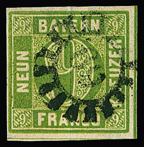 9 Kr. gelbgrün, gute Type I, Kabinettstück mit gMR "69", sign. Brettl. Mi. 130,-