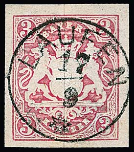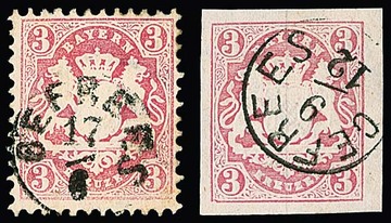 3 Kr. rosa, breitrandiges Kabinettstück mit besserem Fingerhut-K1 von Gefrees, dito auf gez. 3 Kr.