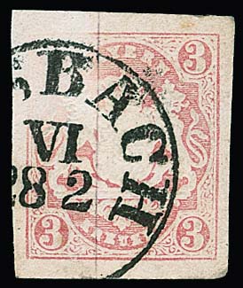 3 Kr. rosa, breitrandiges Luxusstück mit ideal zentrischem Zier-K1 "Laufen", Liebhaberstück!