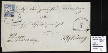 7 Kr. dunkelblau auf Kabinettbrief mit HK "Ebersberg", sign. Stegmüller. Mi. 140,-