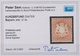 18 Kr. dunkelziegelrot, gutes Wz., im seltenen gestempelten Paar, min. kurze Zähnchen (siehe Foto), HK "Eigenberg", sign. Brettl. Mi. 700,-