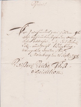 "Moosburg", 1798, handschriftlicher Postschein der "kaißerl. Reichs-Post-Expidition"