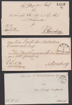 "Laufen", 1846-56, 24 Postscheine (versch. Formulare), meist von-Malsen-Korrespondenz (Hofmarschall des Prinzen Ludwig von Bayern)