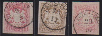 "Lauterecken", kleiner Zier-K1 auf drei Werten inkl. Kabinettstück 6 Kr. braun, sign. Pfenninger