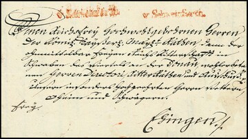 "Schweinfurth", 1791, roter L1 "v. Schweinfurth" (Feuser 300,-) zweifach auf Brief nach Ehingen