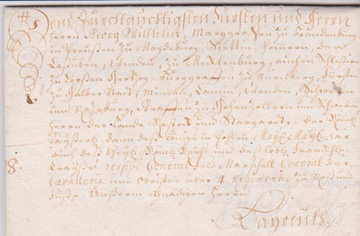 "Rüdenhausen", 1720, dekorativer Schnörkelbrief mit 14-zeiliger Ergebenheitsadresse an den Markgrafen Georg Wilhelm zu Brandenburg