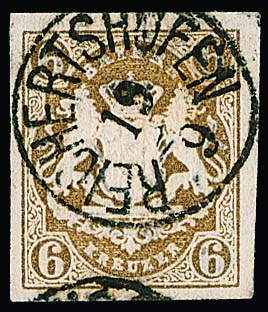 "Reichertshofen, seltener kleiner Fingerhut-K1 klar auf Kabinettstück 6 Kr. braun
