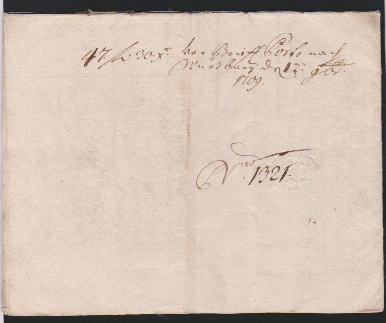 "Würzburg", 1709, seltene achtseitige, großformatige Portorechnung über insgesamt 47 Gld. (!) und 30 Kr.