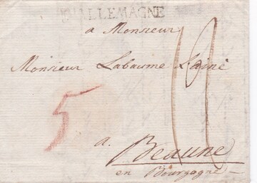 "Würzburg", 1801, früher Auslandsbrief mit L1 "D`Allemagne" nach Frankreich