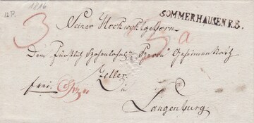 "Sommerhausen R.3.", 1816, klarer L1 auf dekor. Briefhülle nach Langenburg