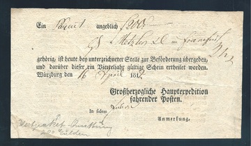 "Würzburg", 1812, Ortsdruck-Postschein, "Großherzogliche Hauptexpedition fahrender Posten"