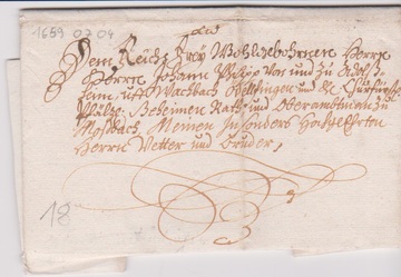 "Würzburg", 1649, früher Schnörkel-Altbrief vom dortigen Julius-Spital nach Wetzhausen