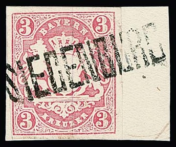"Seligenstadt", kleiner Grotesk-K1 klar auf 3 und 18 Kr. (natürliches Aufklebefältchen)
