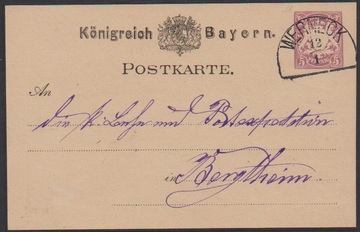 "Werneck", besserer HK klar auf Ganzsachenkarte 5 Pfg. lila 1883