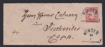 "Winden", besserer HK auf Damencouvert 1880 mit 10 Pfg. rot in den Elsaß