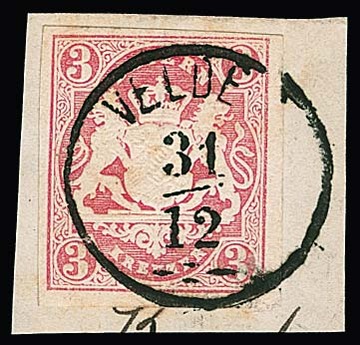 "Velden", kleiner Grotesk-K1 klar auf drei 3 Kr. rot inkl. Kabinettbriefstück