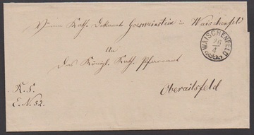 "Waischenfeld", besserer kleiner Zier-K1 klar auf 2 Kr.-Postkarte (Adressfeld radiert), sowie auf zwei Briefen