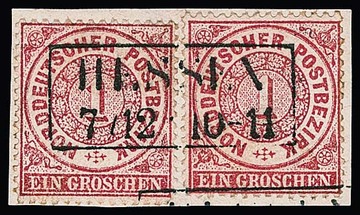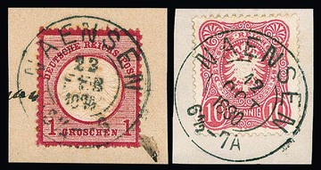 "Naensen", nachverw. K2 auf drei versch. Briefstücken, 1 Gr. NDP (Kerbe), sowie 1 Gr. Brustschild (Fotoexp. Hennies) und 10 Pfg. (Luxus!)
