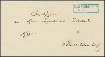 "Mainzholzen", blauer Ra2 auf Brief 1857 und Postschein 1863