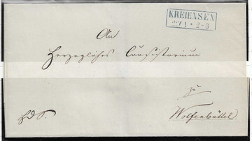 "Kreiensen", (1855), blauer Ra2 auf Brief, sowie sehr seltener schwarzer Ra2 auf 1 Gr.-Postanweisung 1866