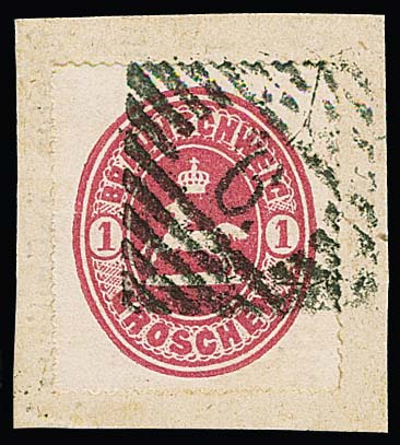 2 Gr. schwarz auf blauem Kartonpapier, Probedruck von 1865, "kleines Pferd mit Krone und darunter Arabesken"