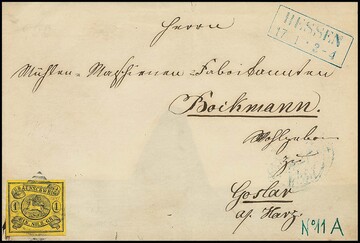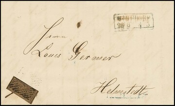 2 Gr. blau (min. "eckrund") auf Prachtbrief mit K2 "Braunschweig", sign. Krause. Mi. 450,-