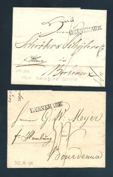 Transit, 1799-1804, "Flensburg", zwei kleine Handelsbriefe mit L1 "DAENNEMARK" nach Bordeaux "fr. Hamburg", Feuser Nr. 246, 300,-