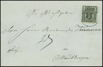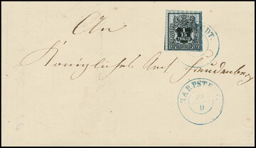 1 Ggr. schw./grün auf Prachtbrief nach Stadthagen. Seltene Verwendung der Inlandsmarke auf einem Brief in das Postvereins-Ausland (Taxis)