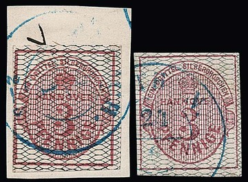 1/10 Th. schw./orange viermal gestempel (zwei Kabinett, zwei kleine Mängel) und ungebraucht (kl. Mgl.), Mi. 940,-