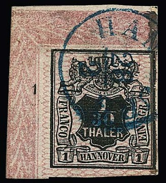 1/15 Th. schw./blau, links voll-, sonst breitrandig, auf Prachtbrief mit K2 "Celle", Mi. 250,-