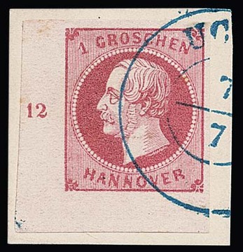 1 Gr. rosa bis lilarosa, gestempelte, vollständige linke "Randleiste" mit allen Reihenzahlen von "1" bis "12", letztere große linke untere Bogenecke