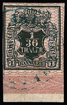 1/30 Th. schw./rosa, prachtvolles gestempeltes Bordüren-Unterrandstück
