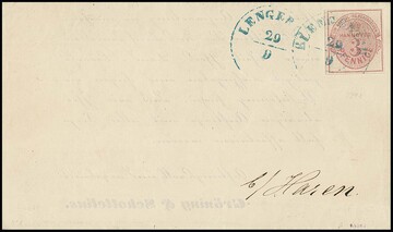 3 Pfge. rosa, Kabinettstück auf Drucksache (ohne Schleife) mit klarem K2 "Lengerich", sign. Grobe, Engel u.a. Mi. 900,-