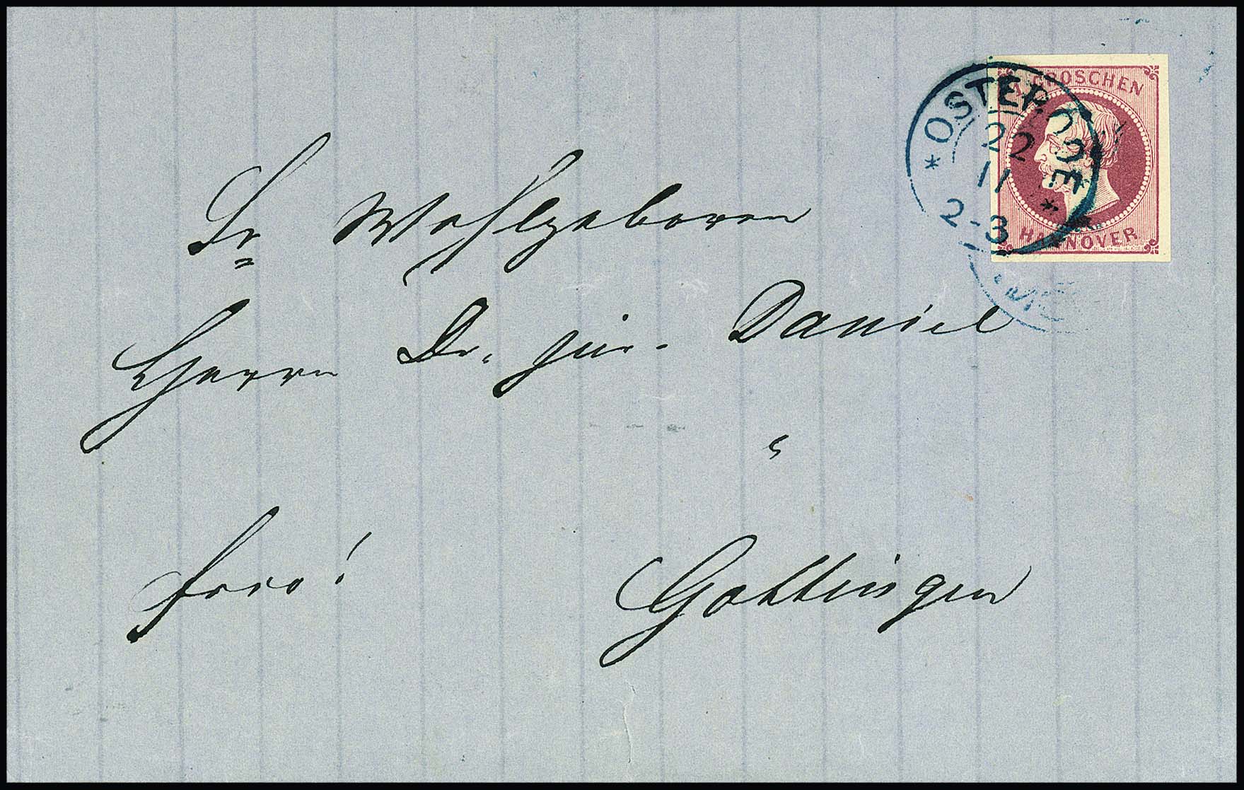 1 Gr. weinrot, grober Druck, Kabinettstück auf Faltbrief (unten winziger Einriß) mit K2 "Osterode", Fotoexp. Berger. Mi. 200,-