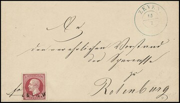 1 Gr. rosa, weit überrandig, links und oben Nebenmarke, auf Kabinettbrief von Harburg (K2) nach Bienenbüttel