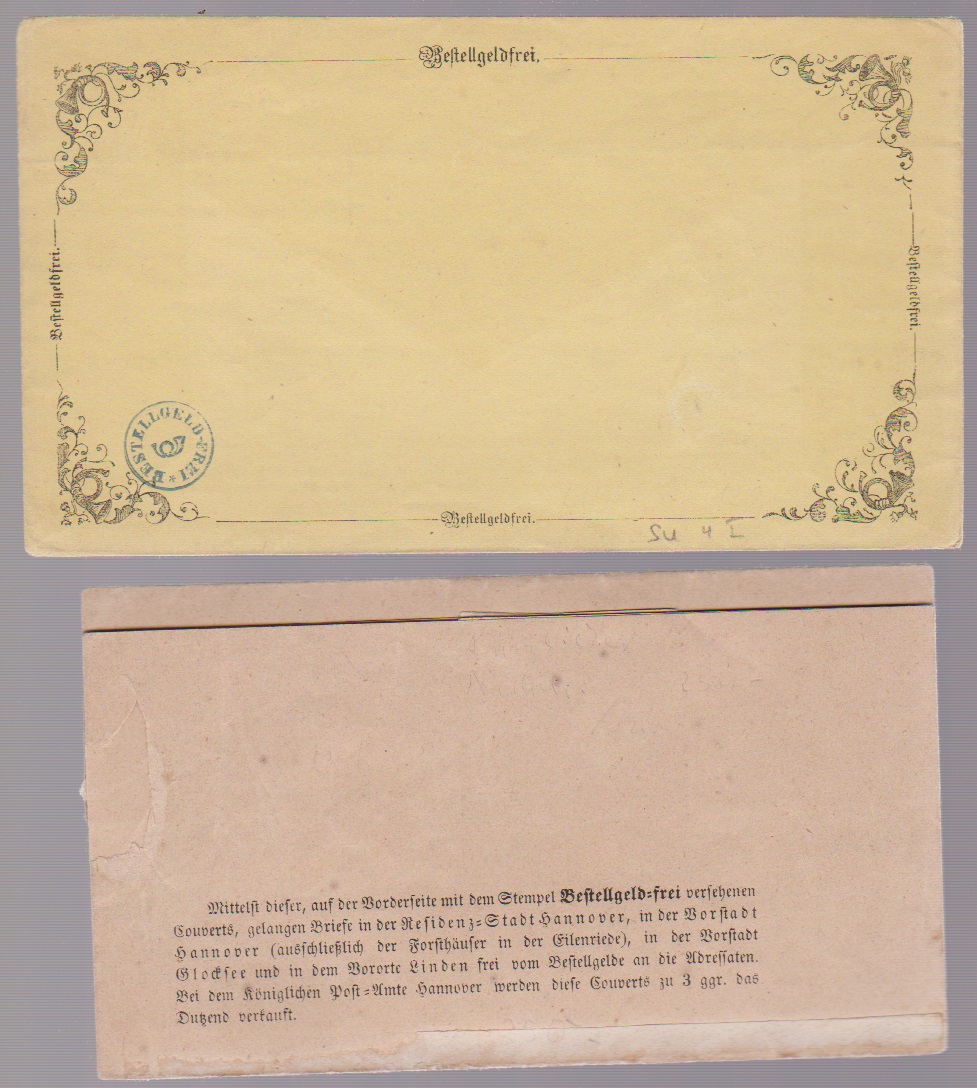 Stadtpost-Couverts "Bestellgeld frei" in beiden Typen je ungebraucht, ein Attest Berger. Mi. 400,-
