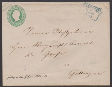 Ganzsache 1 Ggr. grün im seltenen Großformat, ungefaltetes Kabinettcouvert von Hannover nach Hildesheim, Mi. 250,-