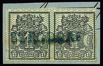 "Burgdorf", blauer L1 voll auf Kabinettbriefstück mit überrandigem Paar 1 Ggr. schw./grün, Fotoexp. Berger