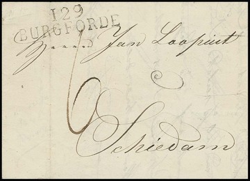 "Burgforde", 1813, klarer L2 "129 BURGFORDE" auf Brief nach Schiedam (Randriß)