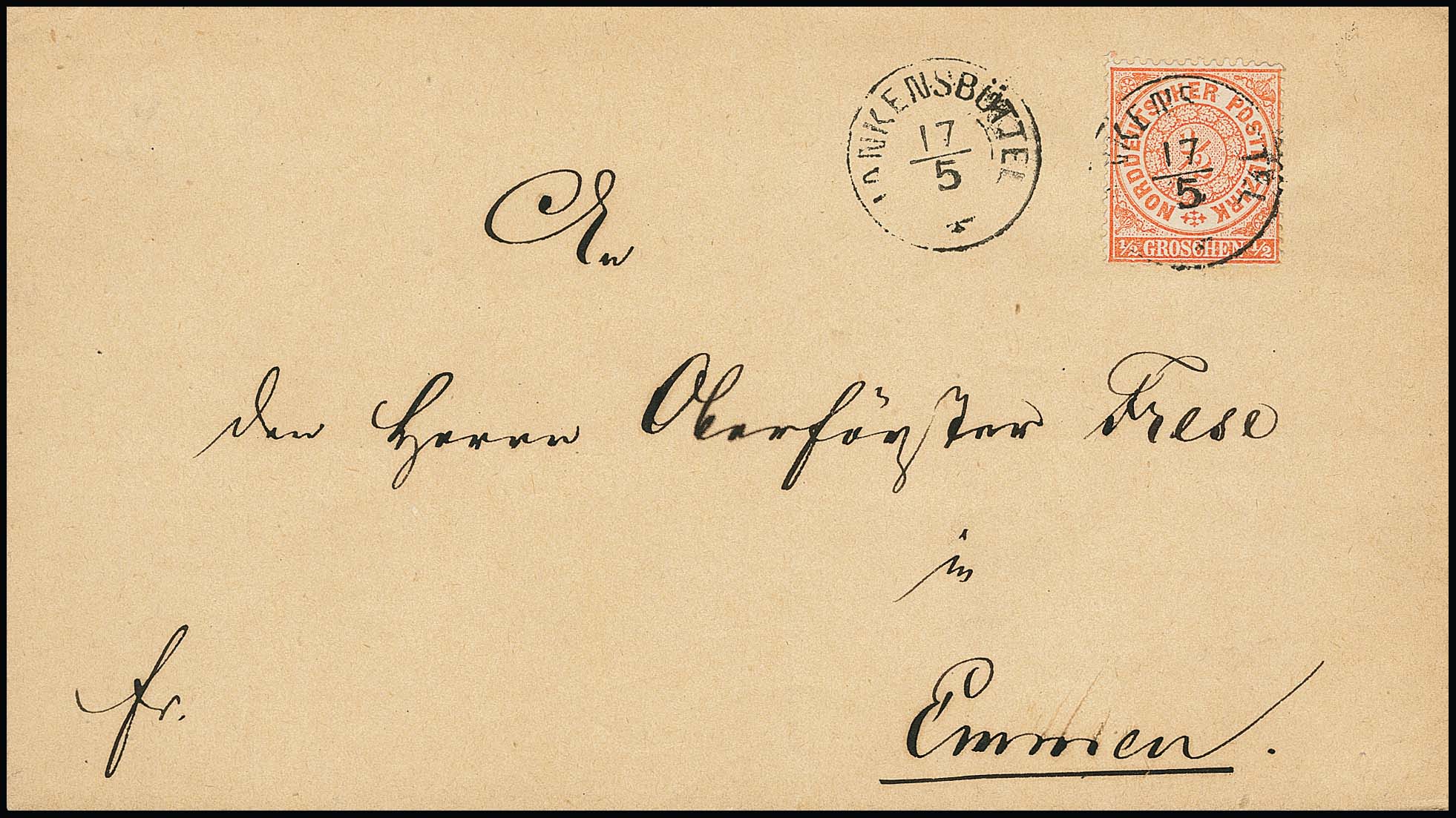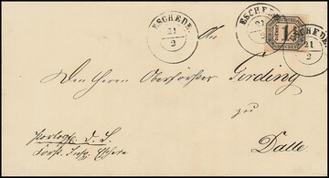 "Fallingbostel", nachverwendeter K2 klar auf dekor. Ortsbereichsbrief mit Einzelfrankatur NDP 1/2 Gr., aus dem eigenen Landbezirk stammend