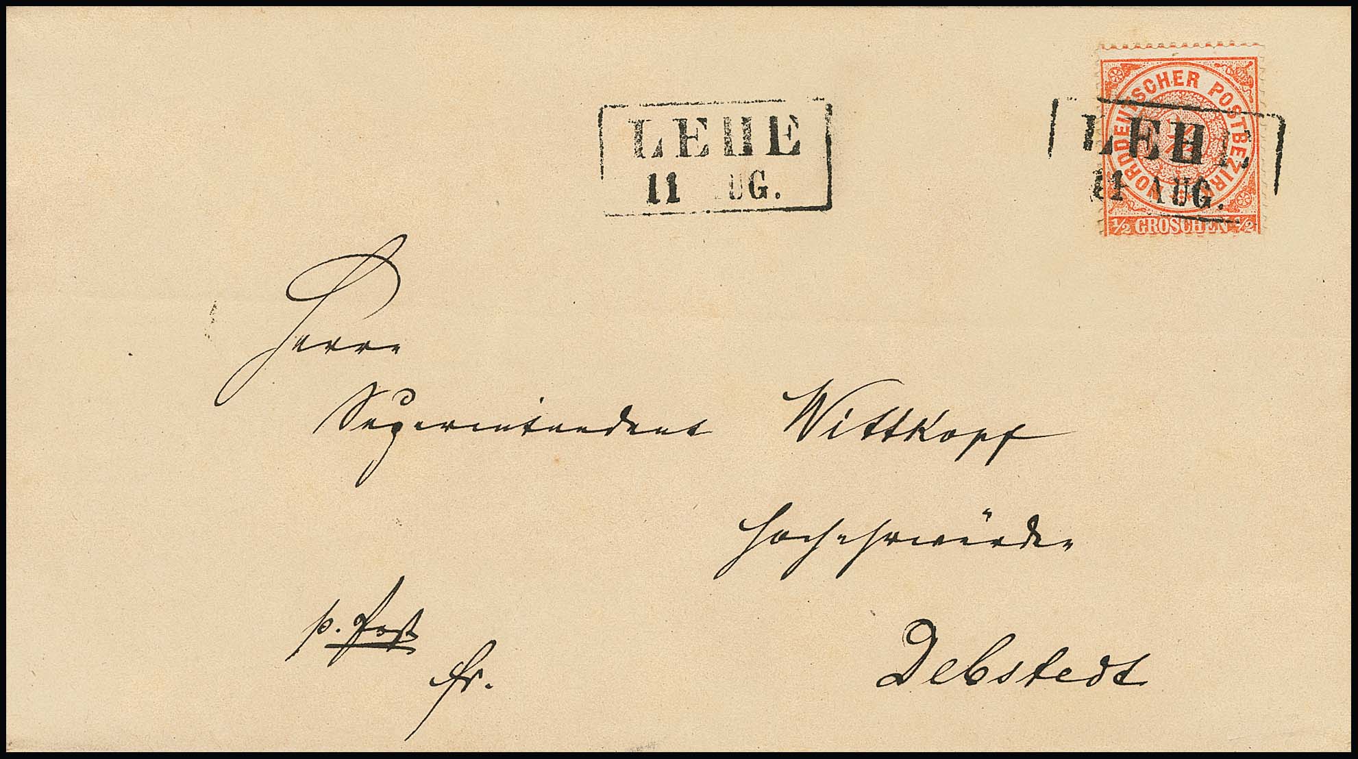"Lehe", nachverw. Ra2 auf Kabinettbrief mit Einzelfrankatur NDP Dienst 1/2 Gr. in den eigenen Landbezirk nach Debstedt (frühere Briefsammlung)
